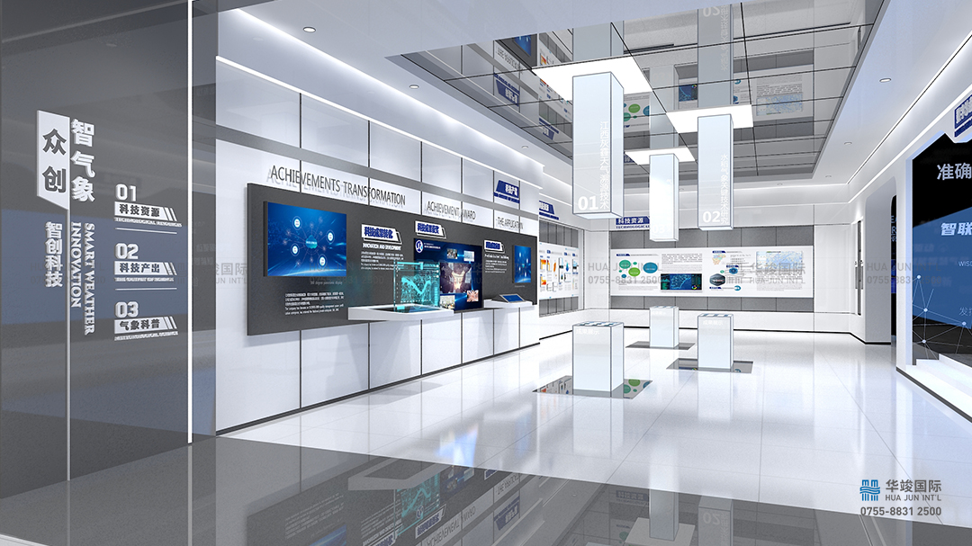 江西“智氣象”展廳項目由華竣國際執(zhí)行整體設(shè)計施工,華竣國際以創(chuàng)新的智慧科技展廳設(shè)計理念,融合互聯(lián)網(wǎng)+思維,順應(yīng)科技化趨勢,結(jié)合互動多媒體、數(shù)字影片、數(shù)字沙盤、虛擬現(xiàn)實等科技展項,打造震撼視覺的高品質(zhì)科技展廳。