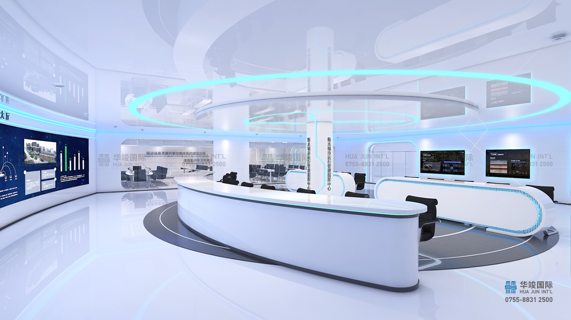 衡水智慧城市運行管理中心展廳主要由入口形象區、指揮大廳、大會議室構成,旨在打造促進衡水市招商引資、輔助經濟發展、提升城市品牌形象的展示窗口。
