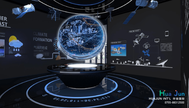 數(shù)字技術(shù): 氣象數(shù)字沙盤 、 投影L幕 、 虛擬現(xiàn)實 、 互動裝置等